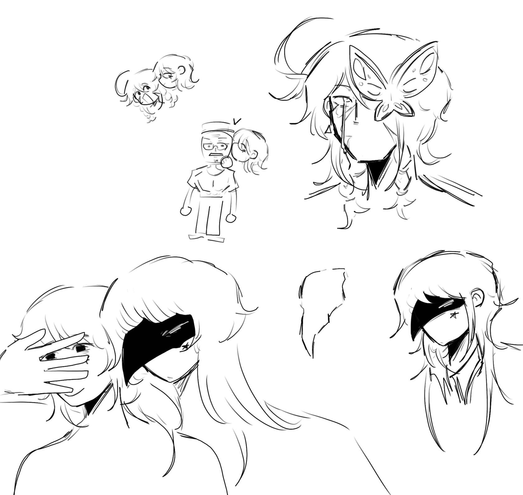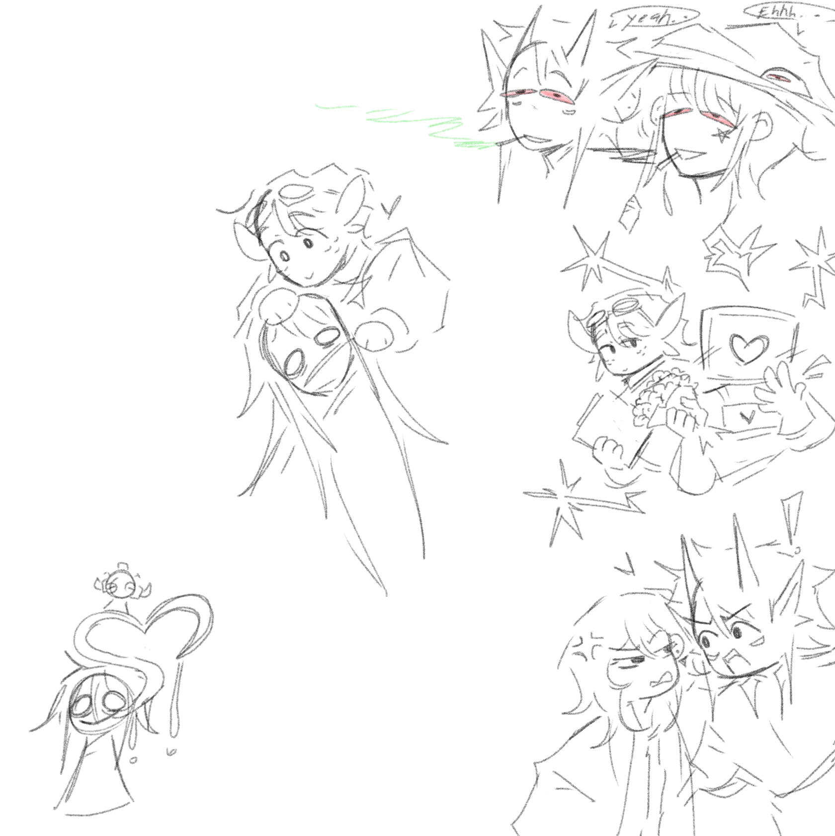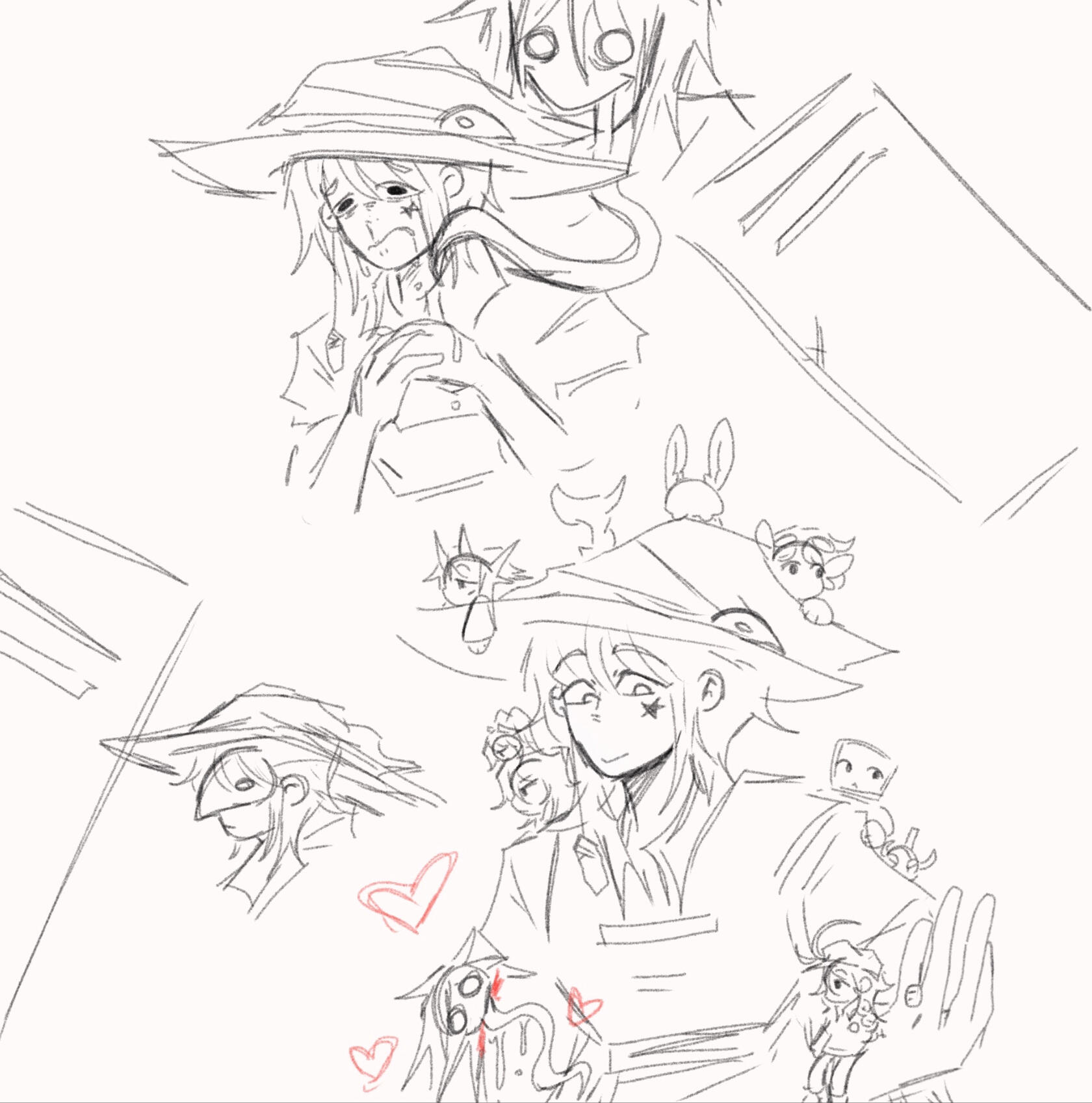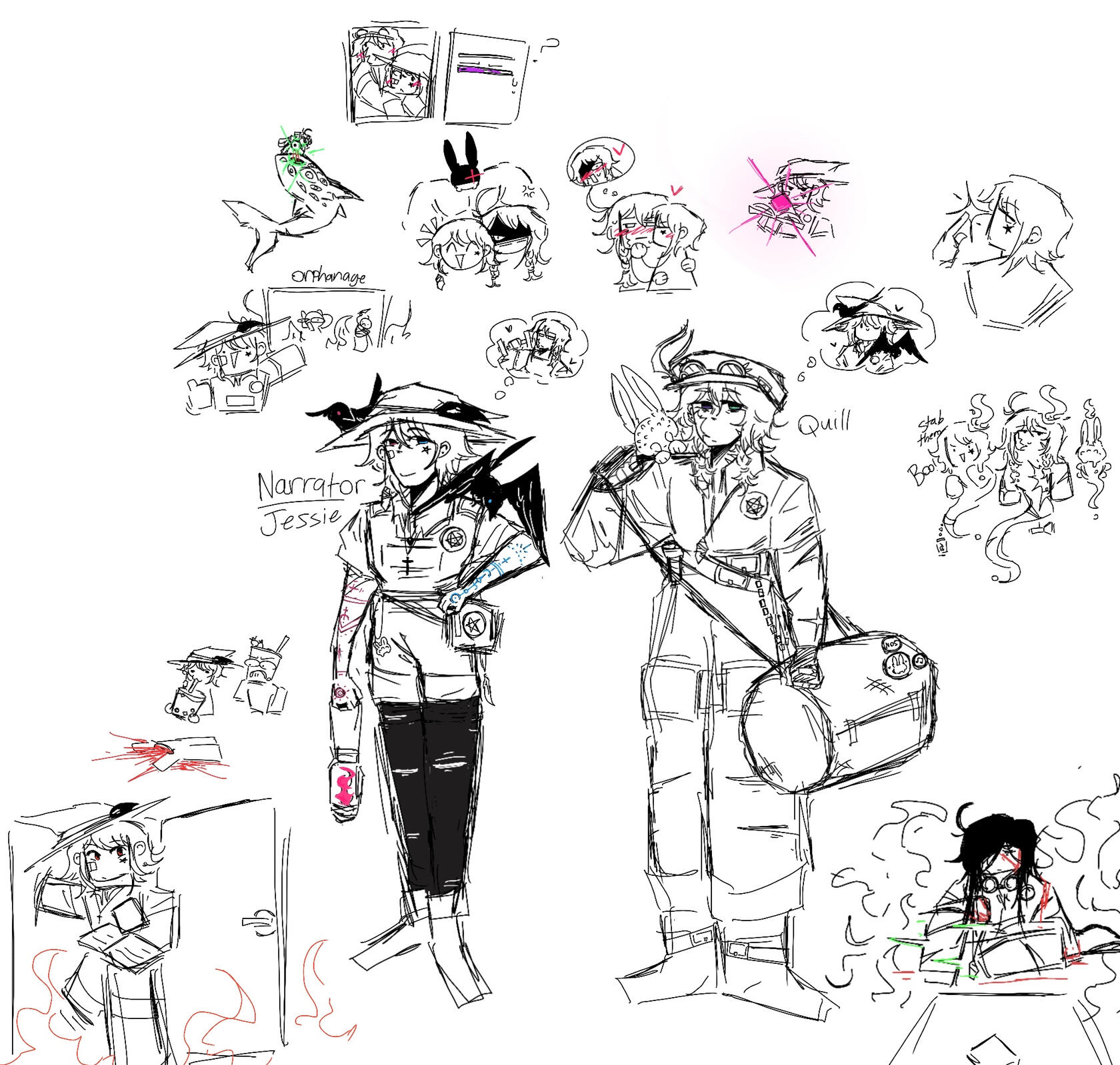 Doodle page of Quill, Jessie, Placeholder, and Pick's there with its body horror..