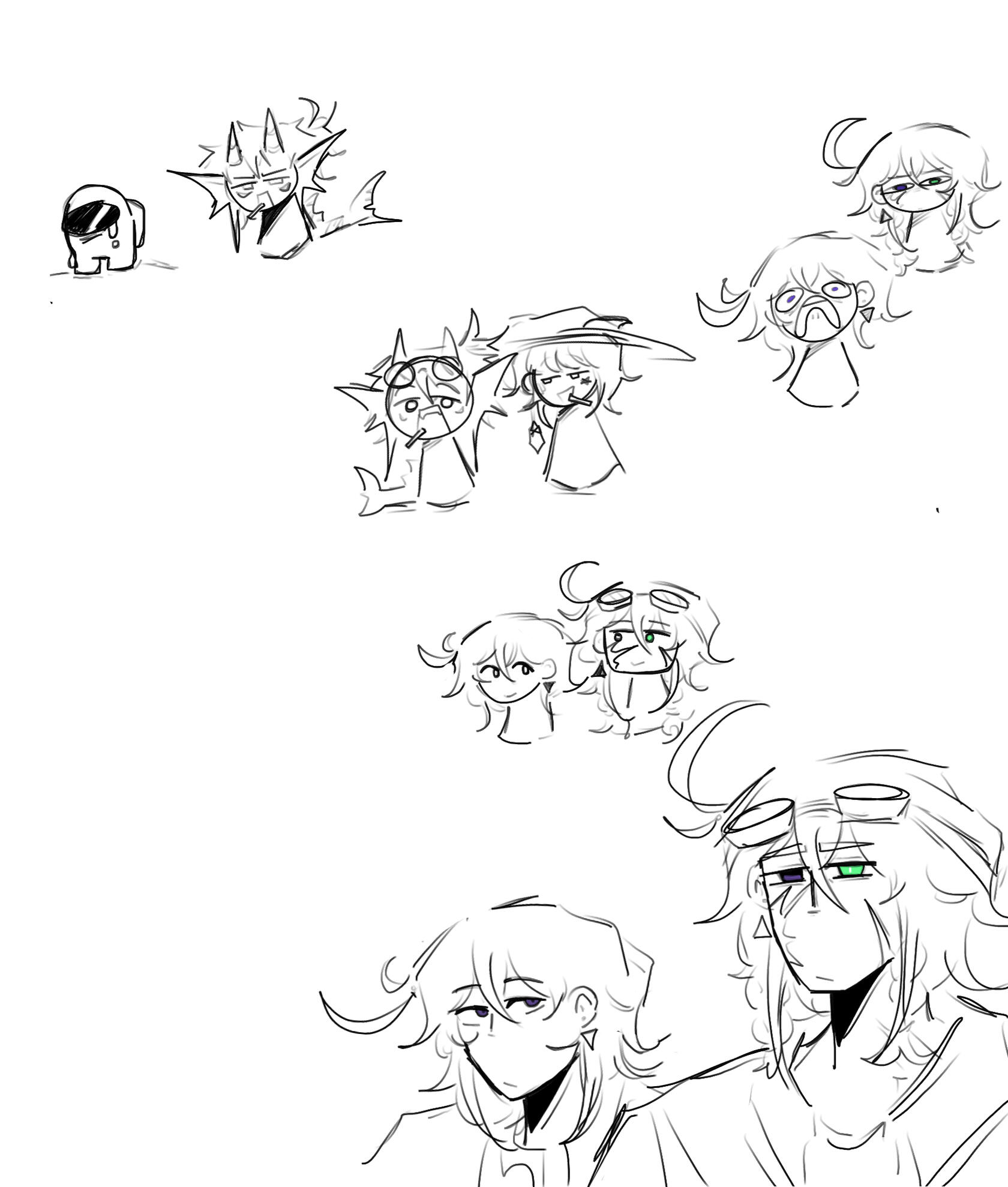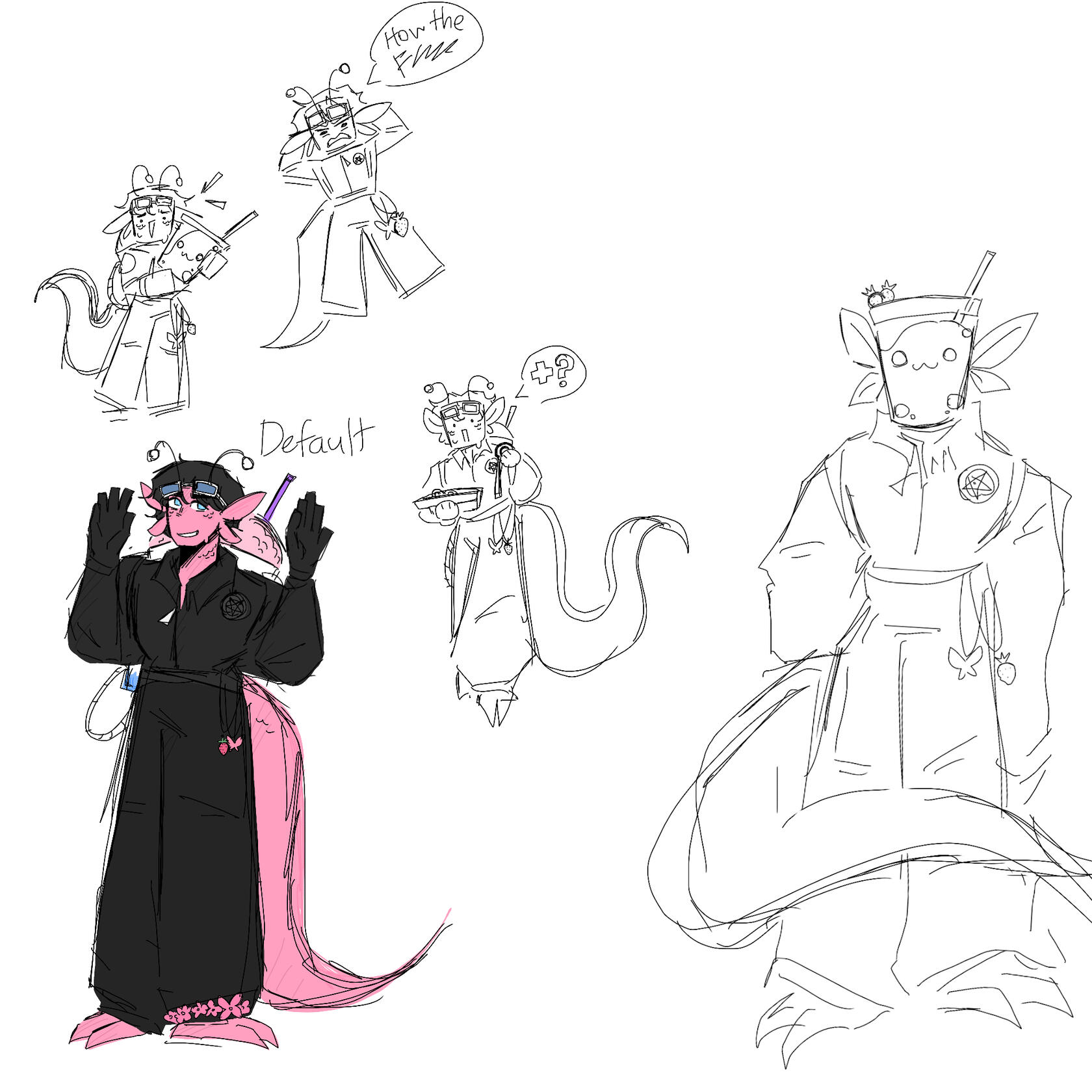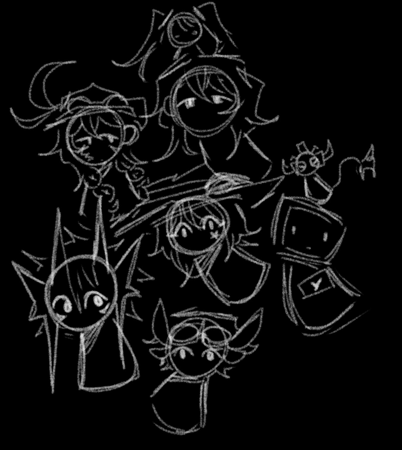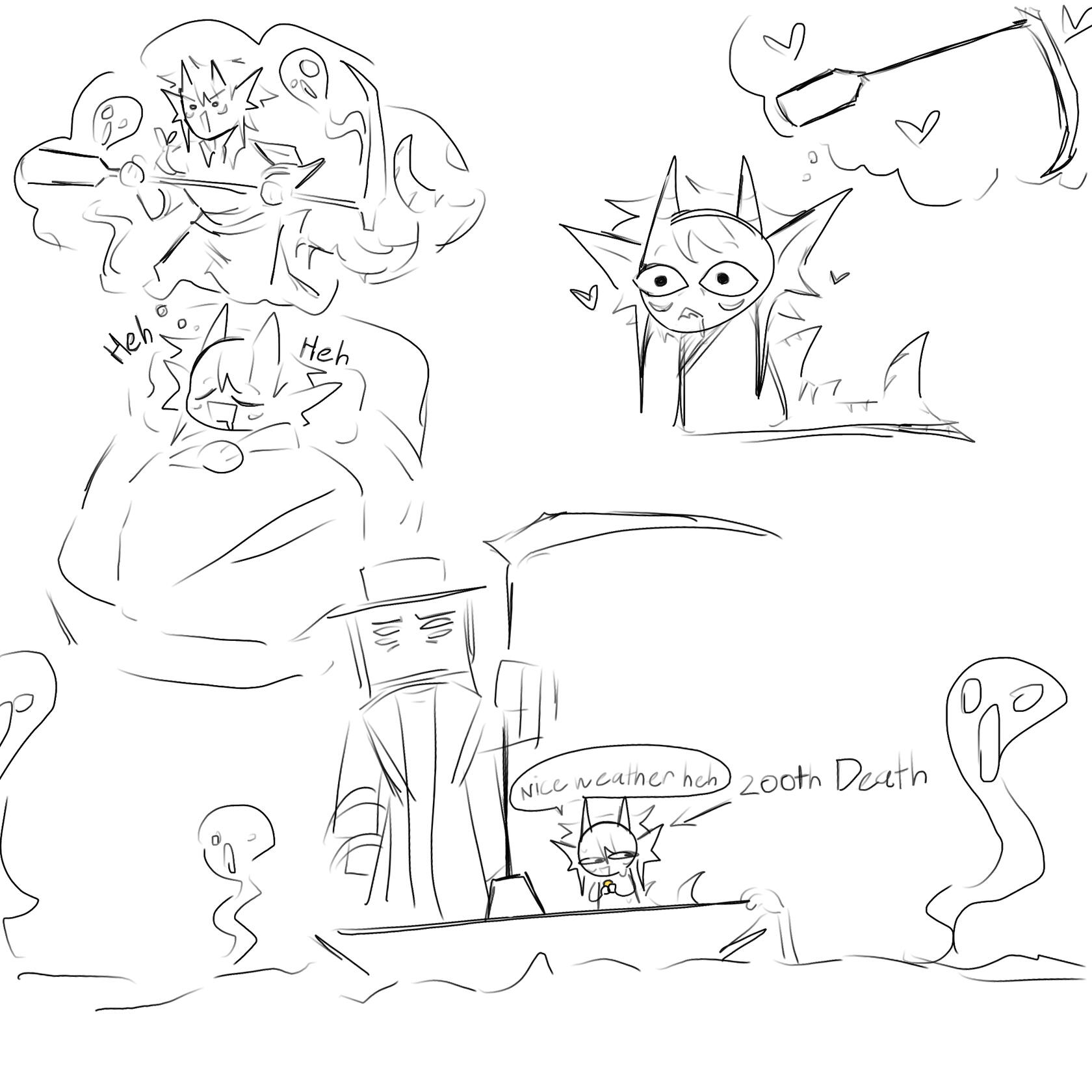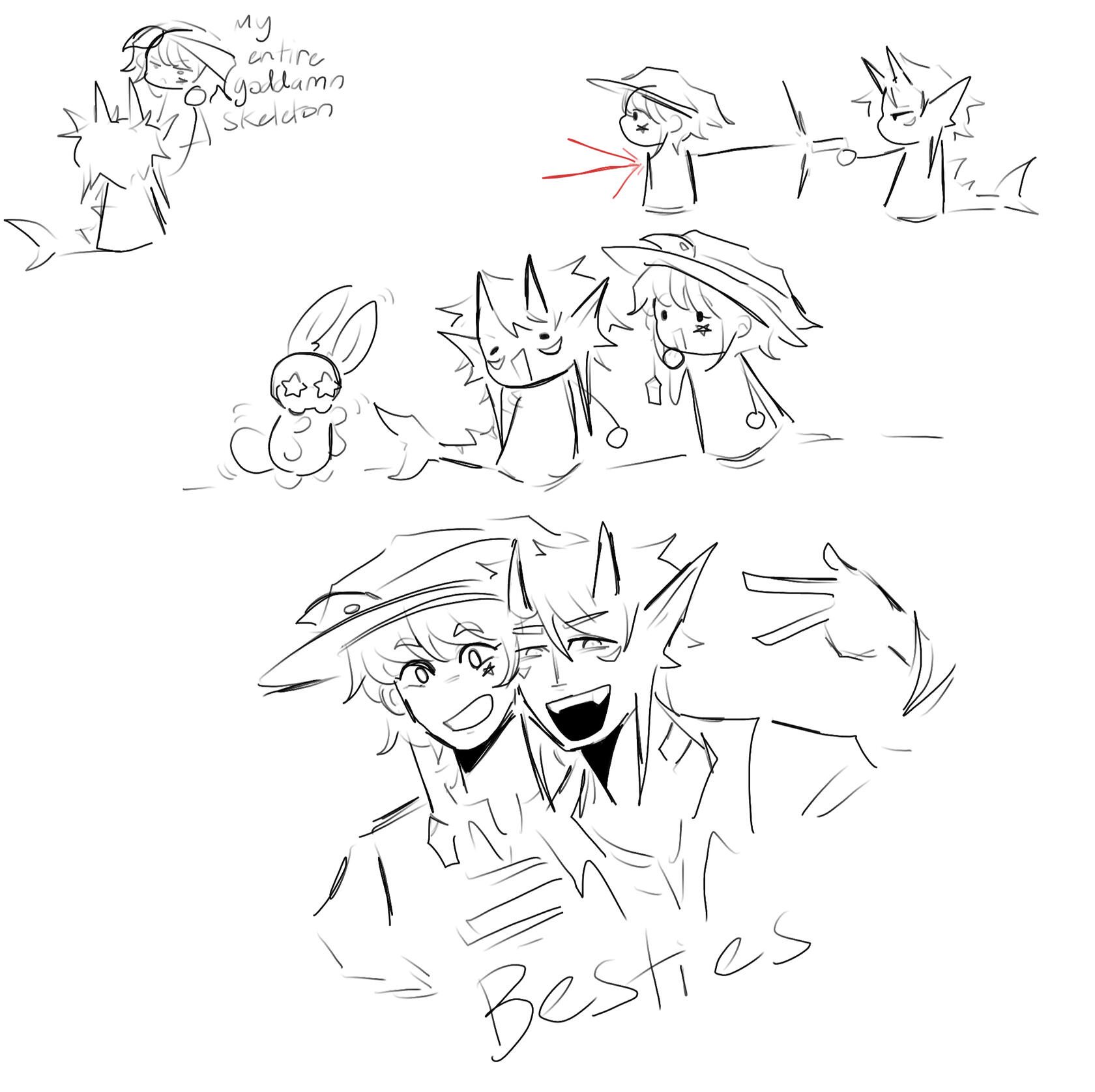 Doodle page of Quill, Jessie, Placeholder, and Pick's there with its body horror..