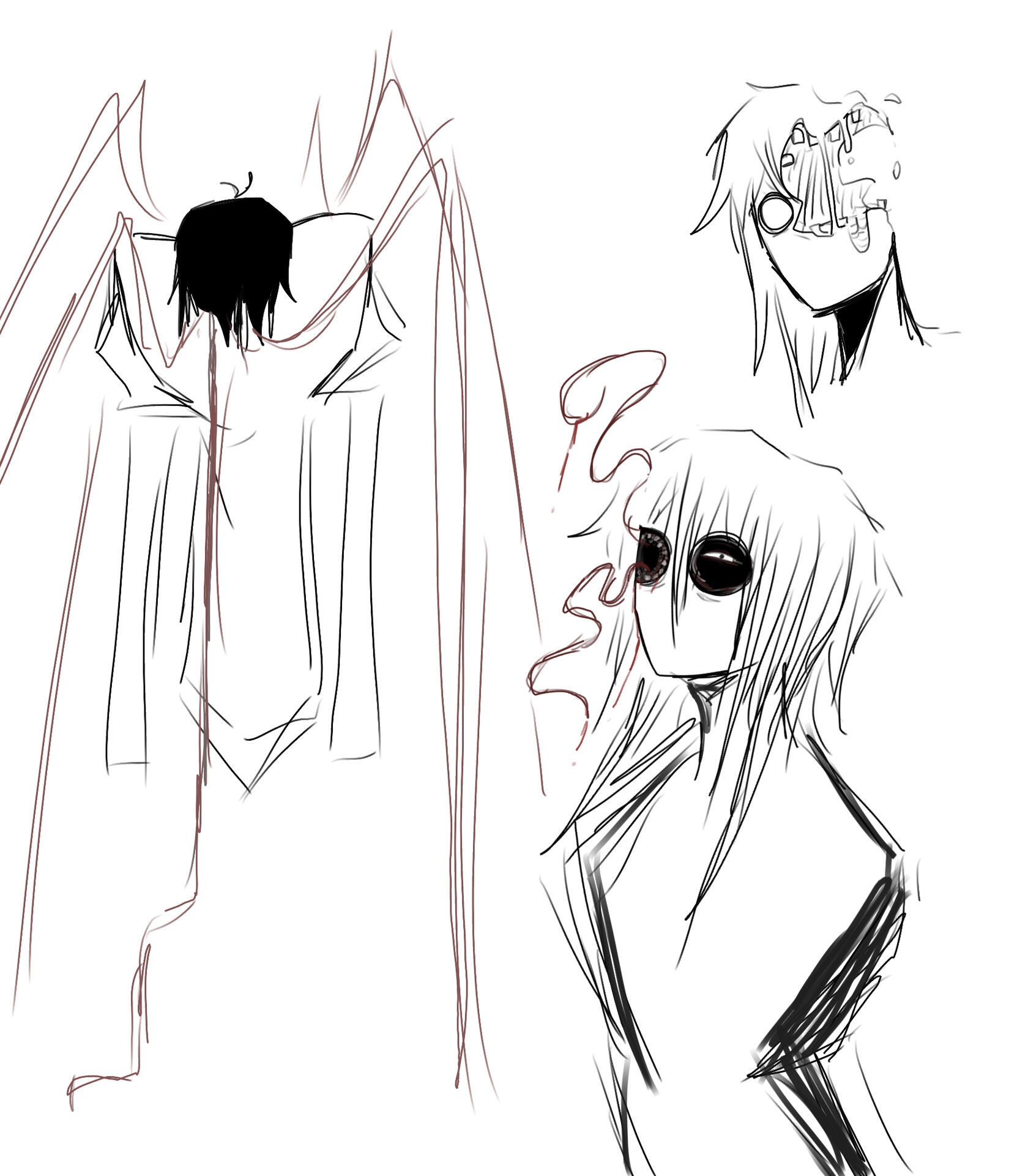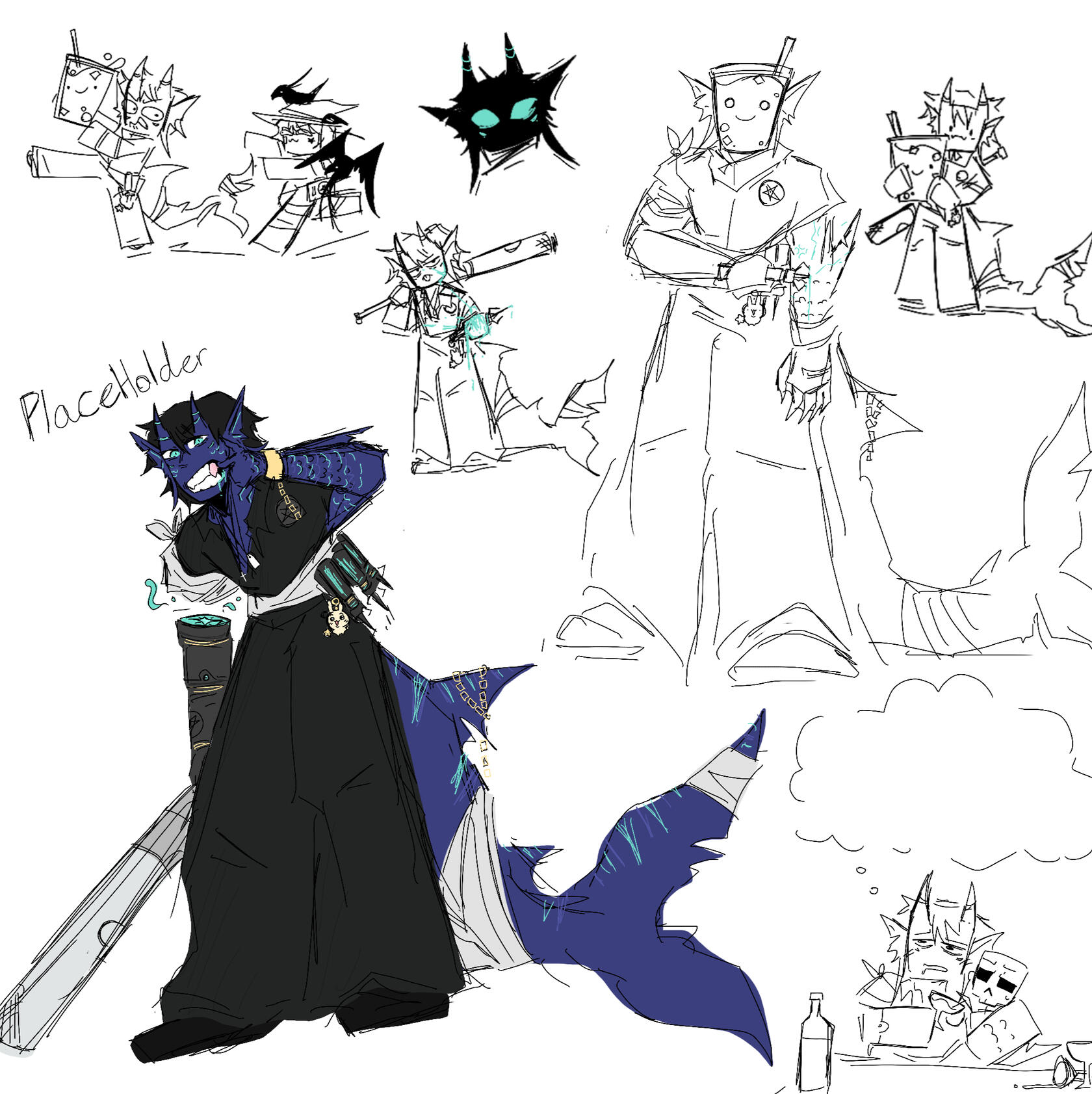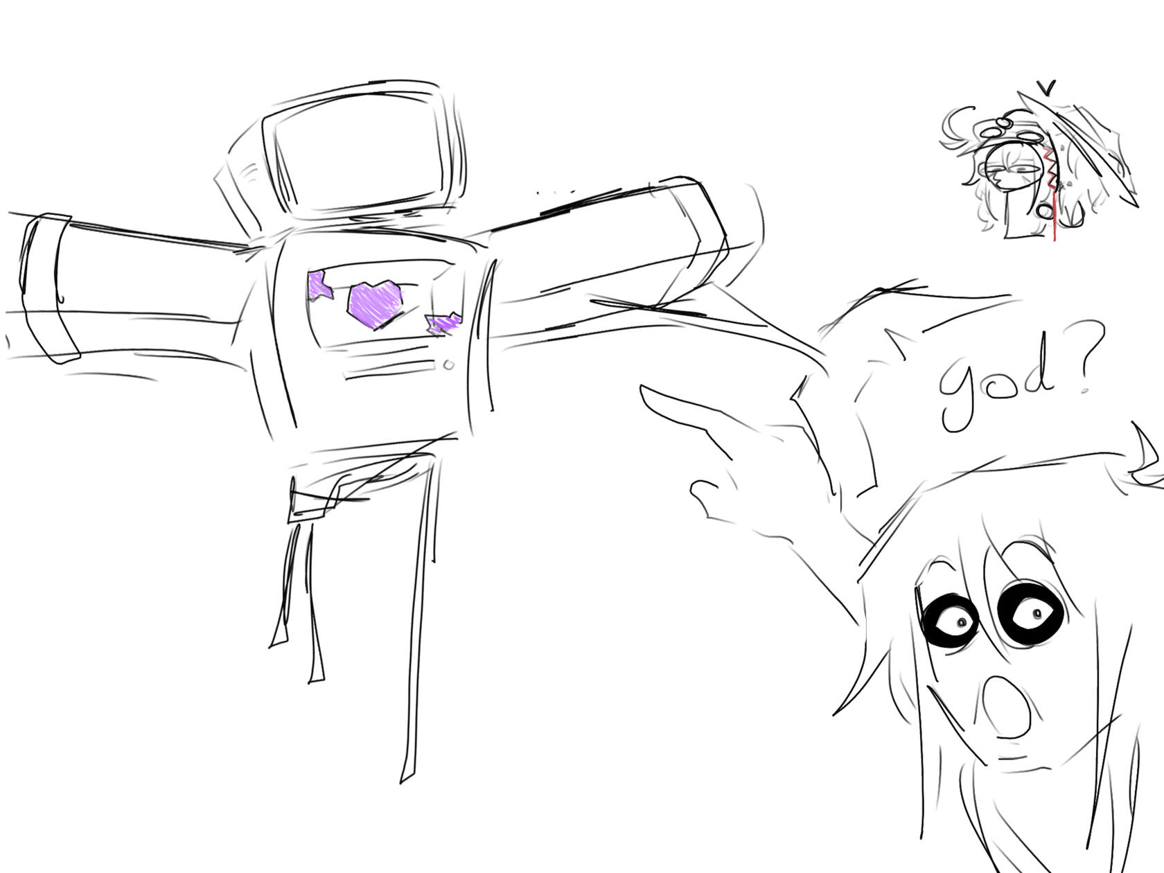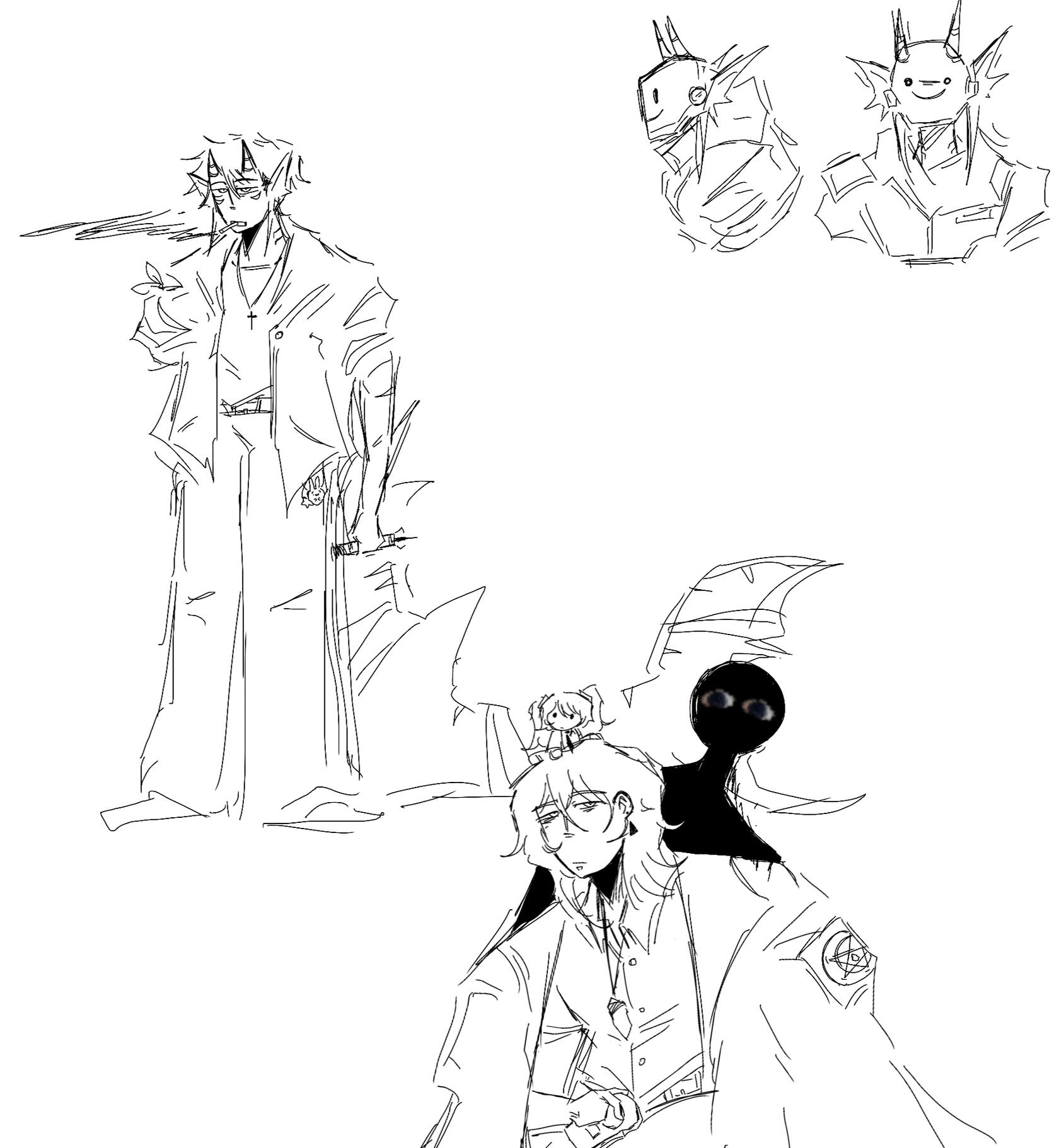 Doodle page of Quill, Jessie, Placeholder, and Pick's there with its body horror..