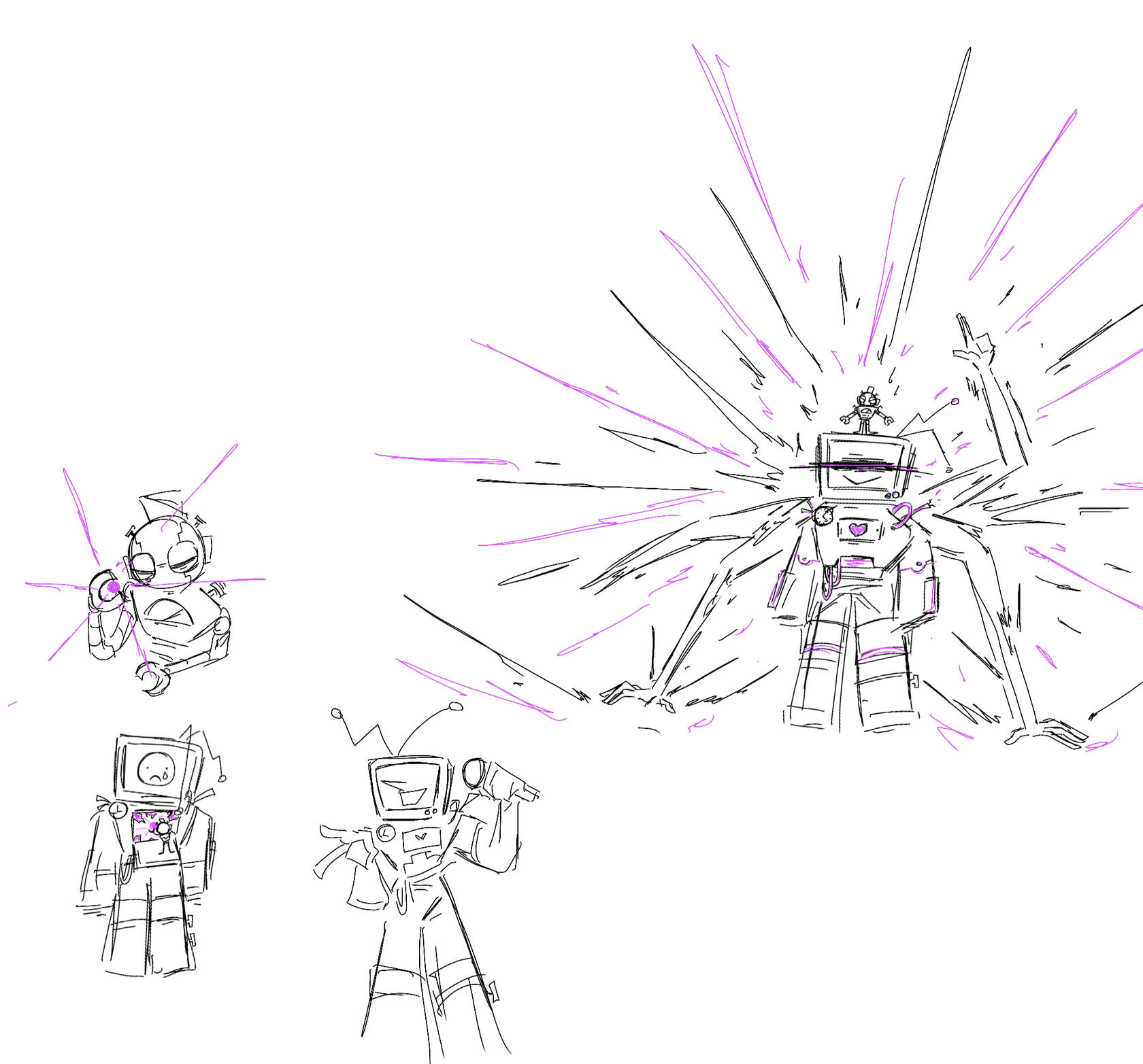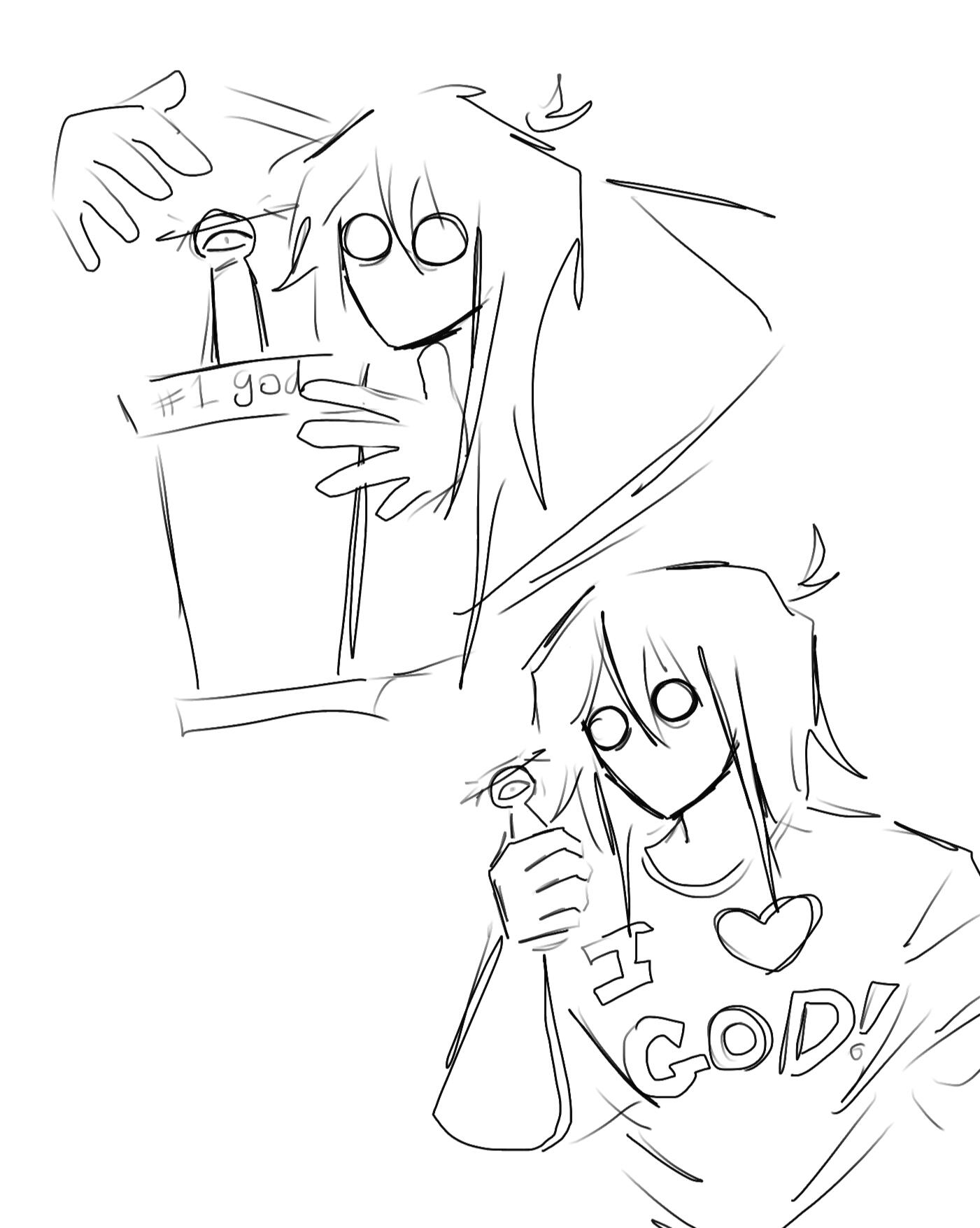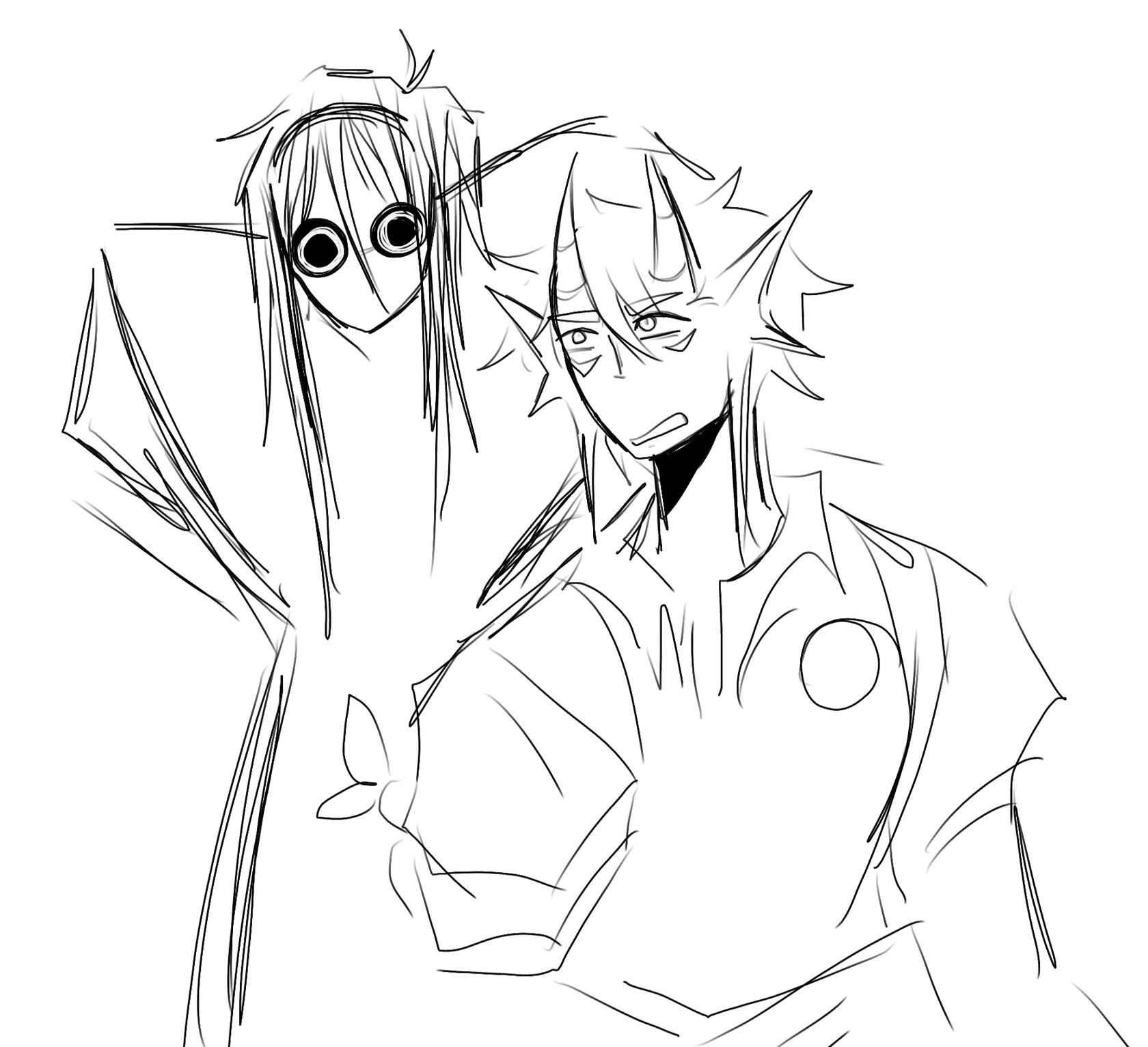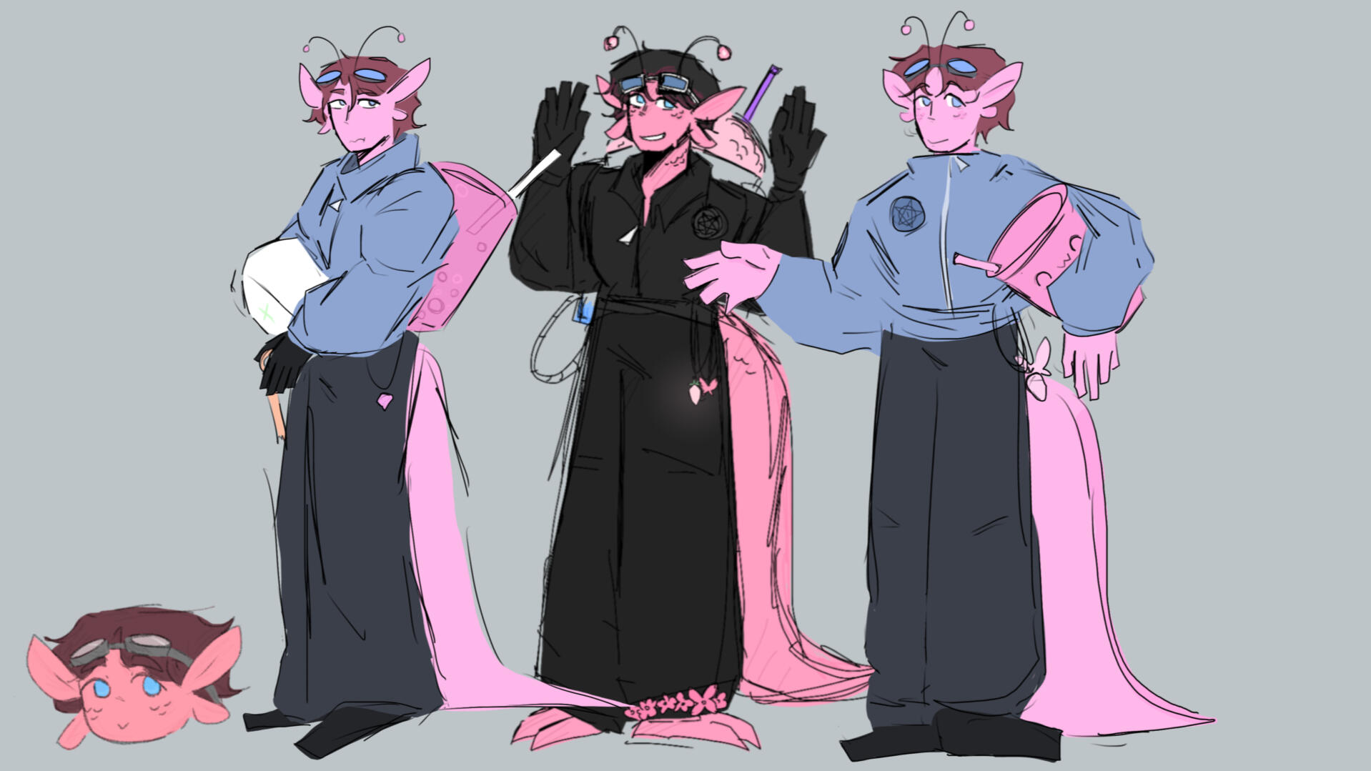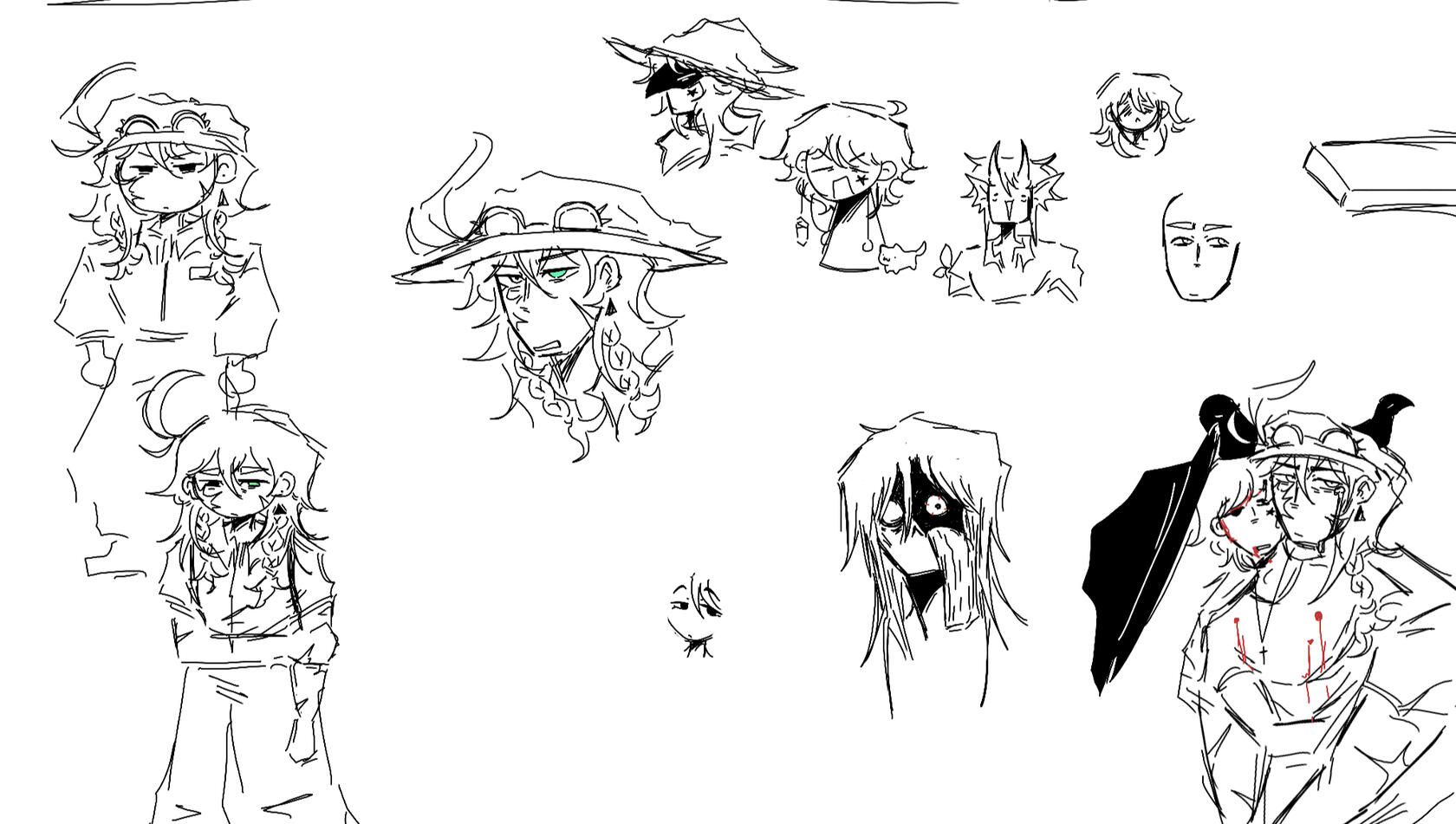 Doodle page of Quill, Jessie, Placeholder, and Pick's there with its body horror..