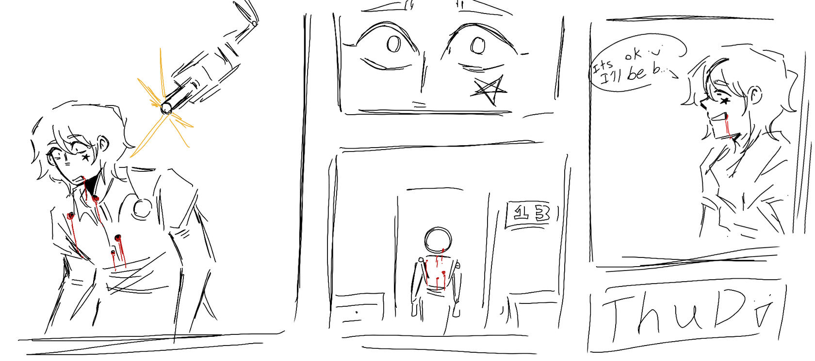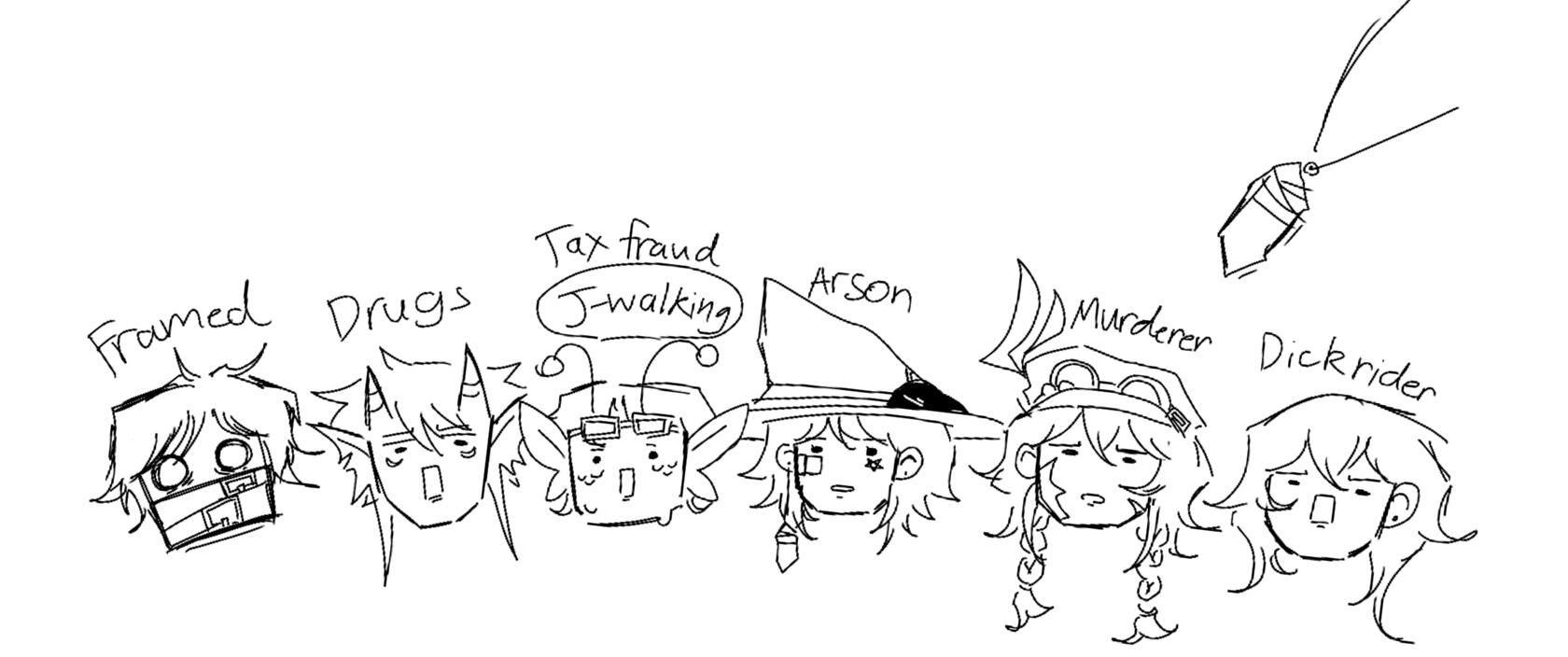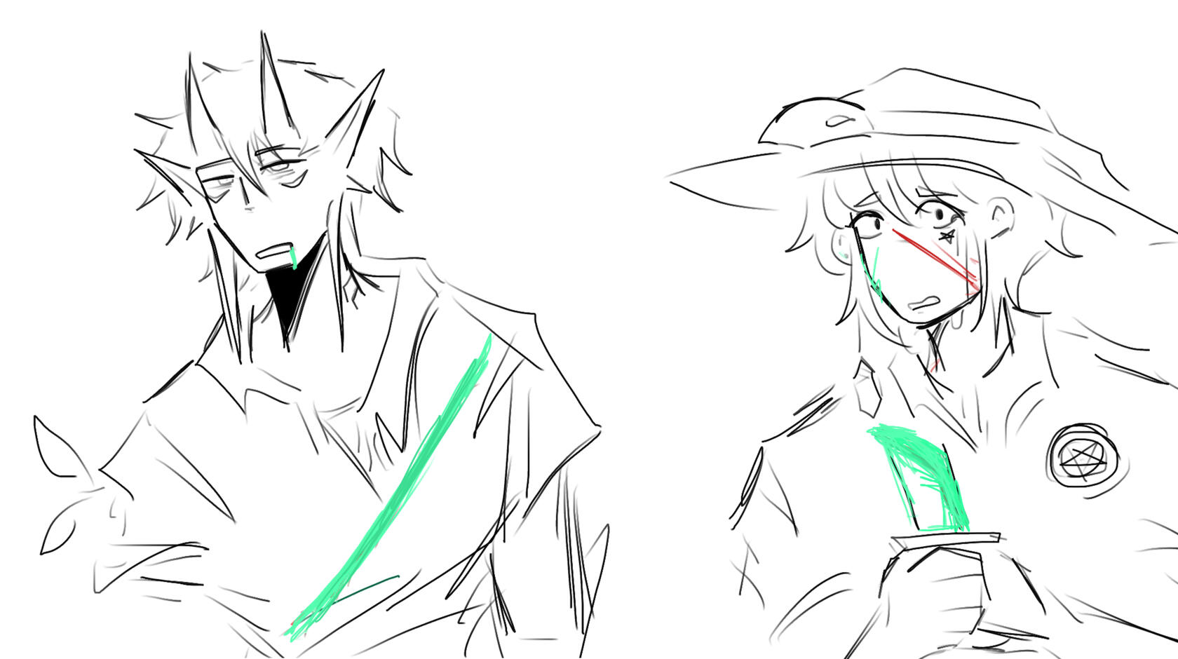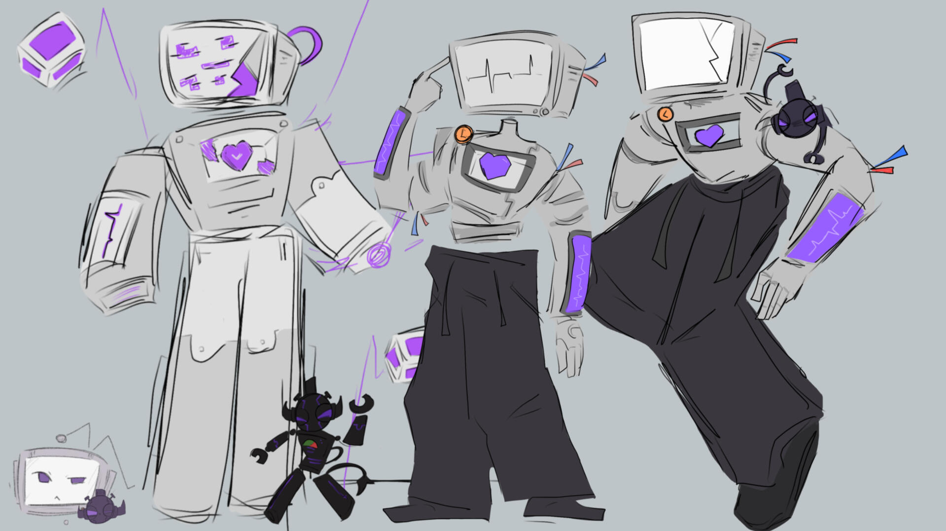 Doodle page of Quill, Jessie, Placeholder, and Pick's there with its body horror..